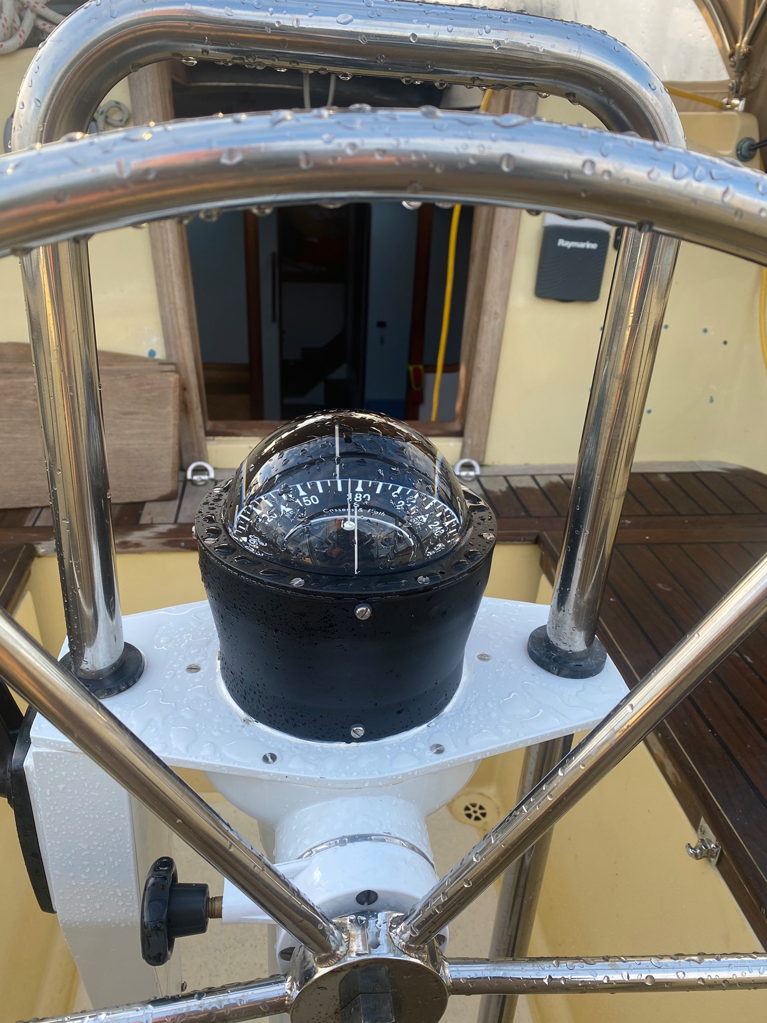 Meanwhile, we finally got a chance to fit the new Cassens and Plath binnacle compass, we’ve been holding off fitting the compass while so much work was going on, but it felt like the right time now.
